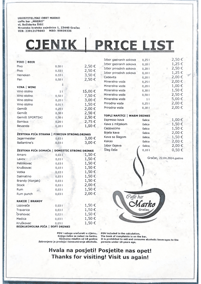 All in all, Caffe bar Marko is more than just a coffee shop; it’s a community hub where stories are shared over cups of delightful brews. Whether you’re a local or just passing through, take a moment to enjoy this vibrant café. You’ll leave with a smile, a satisfied palate, and perhaps a new friend in the generous hearts of Gračac.
